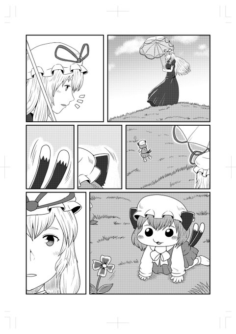 明日(5/5日)の博麗神社例大祭にて「きー26b」でよんのきのまま出展します!こんな感じの新刊出すよ!
