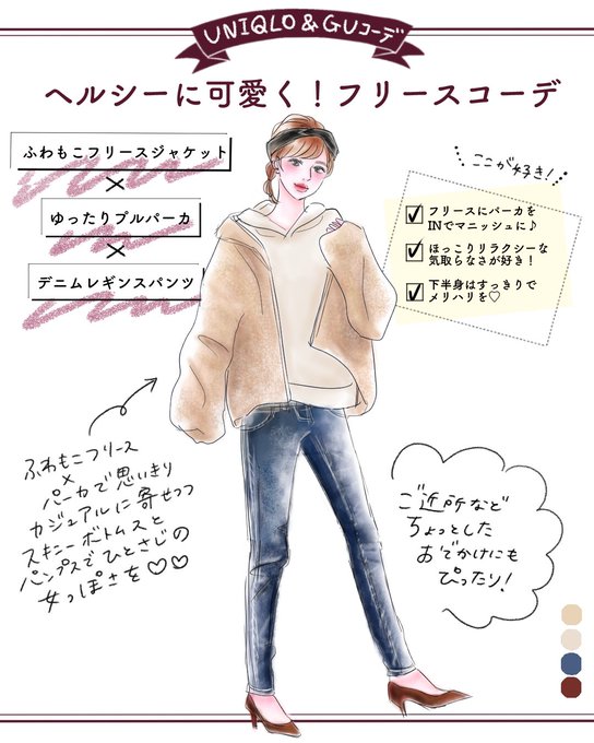 先週9月29日に投稿したウーマンエキサイトのコーデイラスト詳細です〜!品番を教えてという声が多かったので、改めて明記してみました〜