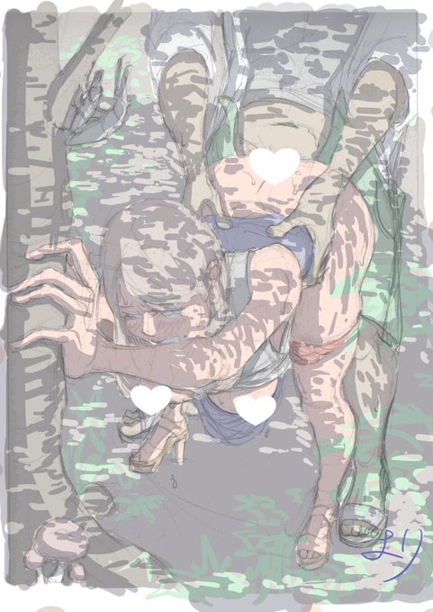 影ラフ ざっくりだけど木漏れ日は演出を考慮して粗密を付けたり落ちる対象に合わせて形を変えたりしてみているがまだ見づらいかな #エロ絵 #絵描きさんと繋がりたい
