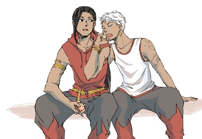 果物を切り分けながら食べさせてると餌付けしてる気になるなーって思ってるジャミルと差し出されるまま口開けて待ってるカリム 距離が近いスカラビアが好き