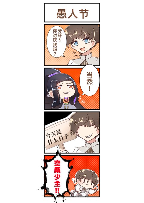 【お題:嘘】 男若様(男少主)と易牙で四コマ エイプリルフールネタです! #食物語版深夜の創作60分一本勝負 #食物語_FA #食物语