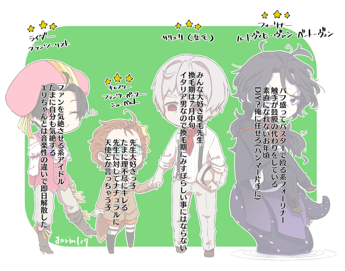 サリエリ先生と弟子(捏造鯖注意) リスト、シューベルト、ベートーヴェンだけとりあえず形にしてみた