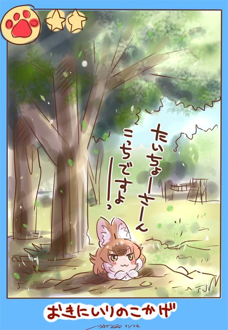 パークの方針でサーバルちゃんの撮影をしていたがことごとく輝いた状態になってしまい部外者から「エフェクトがわざとらしい」とまで言われてしまうサーバルちゃん描いた