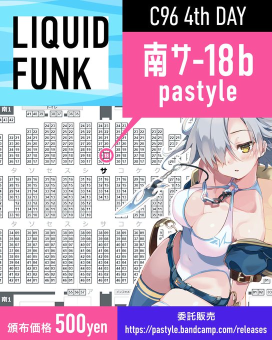 pastyleさんのリキッドファンク、このあと南館で頒布されますよー。「サ-18b」へGOです。