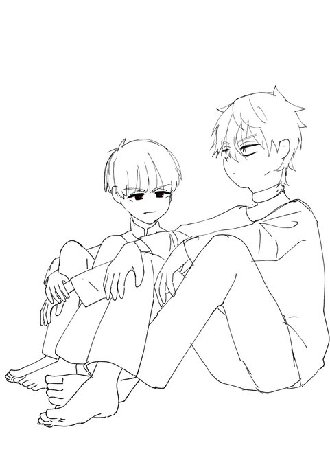 『眠気』のワンシーンを今の絵柄で描いてみた✌️ ⚠︎顔あり捏造擬人化白肌BL⚠︎ #シユシキ #SKY゜_LightIllust #顔あり