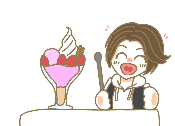 眠気対策に描いてたらくがきがいいかんじなので載せちゃいます パフェに喜ぶいしばしくんです