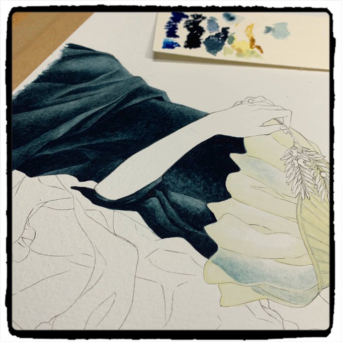 今のトコロまぁまぁ上手く塗れてる気がします 続きはまた明日… #イラスト #illustration #不透明水彩