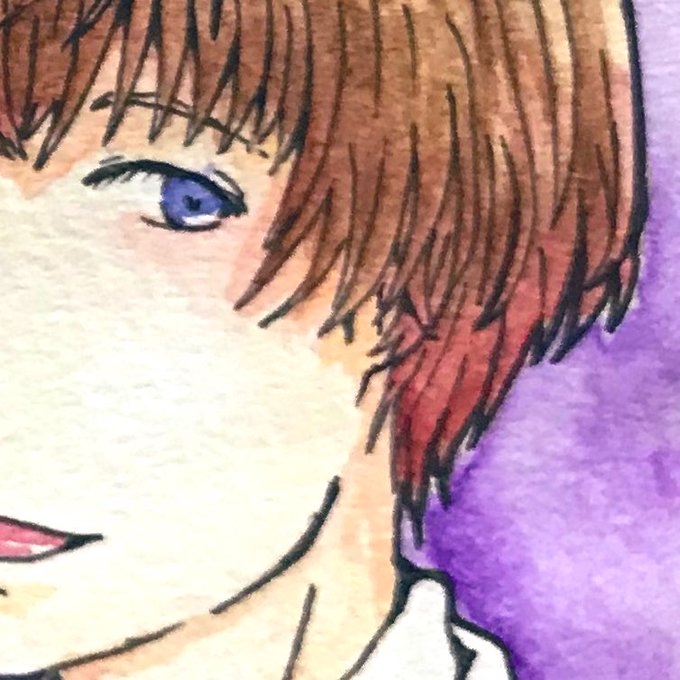 まじこさん @IQ8majiko はね 瞳は青が中心で、水色と緑の入り交じり そして明るい金に縁取られ、目元や瞼はピンクのような紫のようなイメージ!!