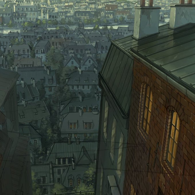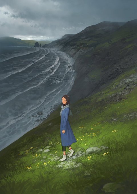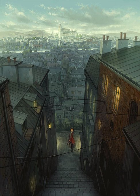 昨日の絵の制作過程GIFです。下塗りでイメージを固めたあとは遠景から仕上げていくといういつもの感じ。迷った末に中盤で近景のライティングを変えました。