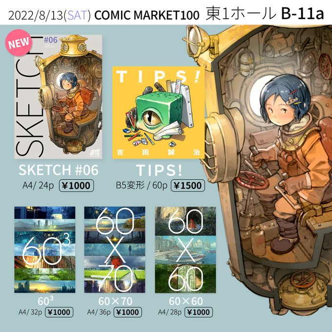 新刊「SKETCH #06」は趣味と仕事のイラストまとめ本です。既刊「TIPS!」やワンドロ本3種もご用意しました。 #C100