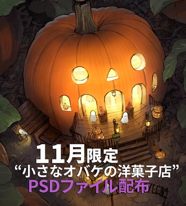 FANBOXの支援者向けに、「小さなオバケの洋菓子店」のPSDファイルと高画質JPGを公開しました。DL期間は今月末までです。 https://t.co/xlgqeQPBGT