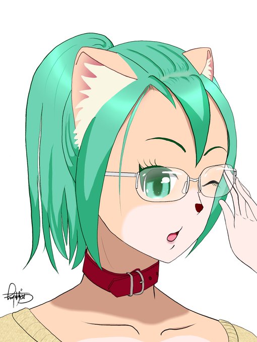 メガネ、ポニーテール、首輪、犬耳、つり目 属性てんこ盛りです。