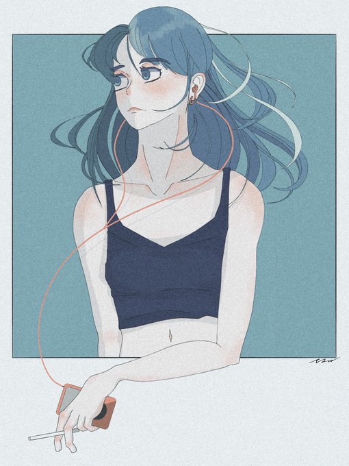 iPod classic で音楽を聴きながら、 煙草を吸い、 黄昏てる髪の長い女性 #夏の創作クラスターフォロー祭り #絵描きさんと繫がりたい #イラスト好きな人と繋がりたい #イラスト #illustration