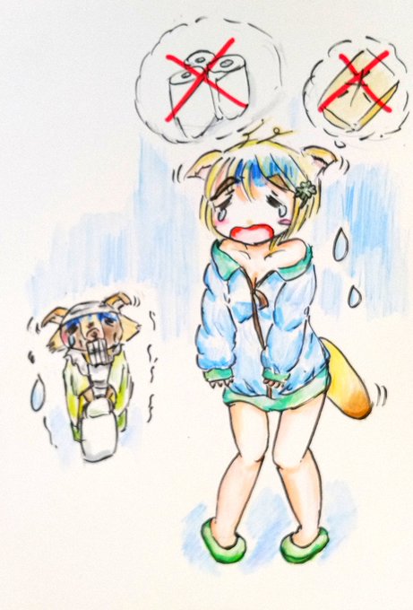 買い物したらお米や一部の食品まで売り切れていた トイレットペーパーもヤバいらしいね #イラスト王国 #アナログイラスト #芸術同盟 #絵描き好きと繋がりたい #売り切れ #オリキャラ #デマ