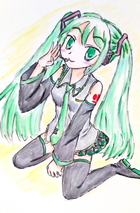 #ミクの日 だと言うことで便乗して描きました オリキャラ以外で描いたの久しぶりだな #初音ミク #アナログイラスト #芸術同盟 #イラスト通り