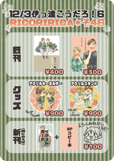 【12/3だてころ6】お品書きですー!新しいのは間に合ったら持ち込みます!(たぶん間に合う)ポスターを目印にどうぞ!【RICORIRICA/スペースNo.そ46】