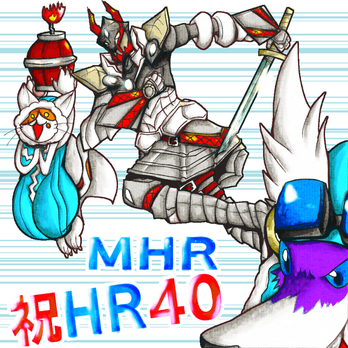 モンハンライズ:風神龍&雷神龍討伐記念イラスト。