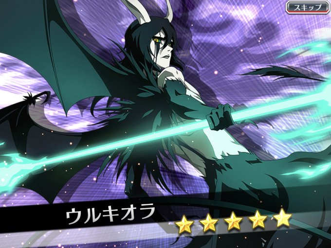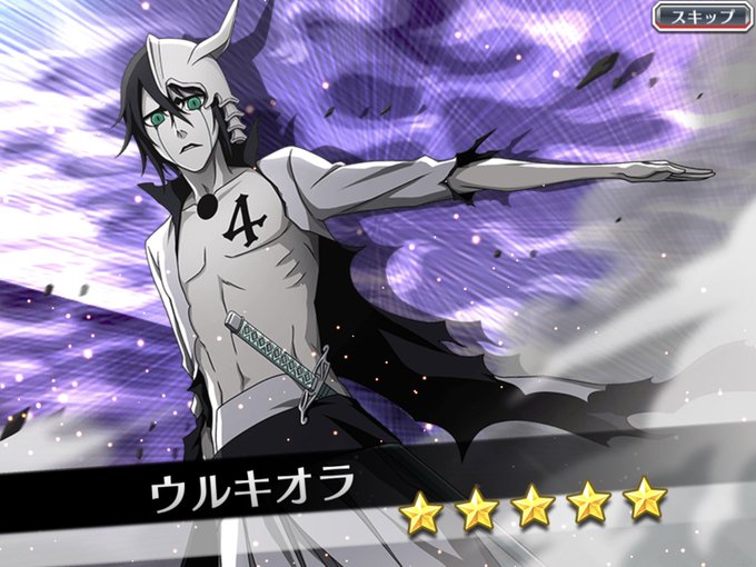 うふふ(๑・̑◡・̑๑) ウルキオラの新作の来たー😭100連以内で来てくれてありがとう😭かっこいー。また石貯めなきゃ😭 #ブレソル #BleachBraveSouls #ウルキオラ