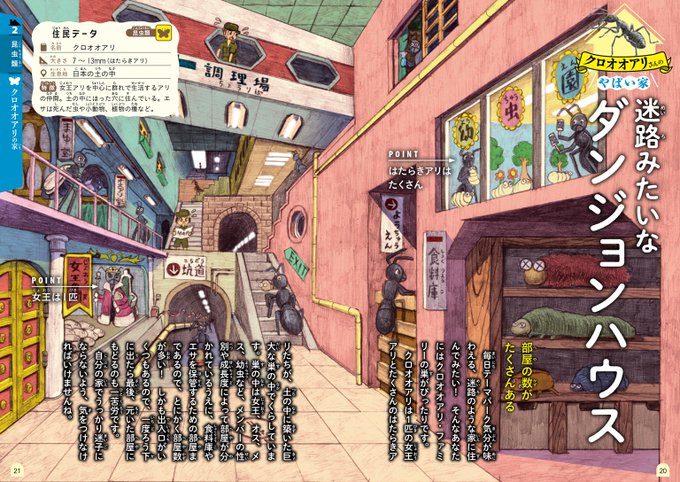 西東社刊 加藤英明さん監修『私の家、すごいんです。いきものやばいすみか図鑑』で見開きイラスト4点を描かせていただきました。