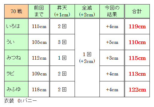 #盛りミララン 5日目!みっふ!衣装は体操服!ようかいのたぐいじゃ 今日は全然盛れませんでした。というのも単騎か勝てない相手かの二択になってしまい、当然単騎を選ぶと1Tで終わるため、何も起こらずに戦闘が終了するのです。ポイントは一番取れたけど盛り上がりには欠けるかな。 さあ本戦だ