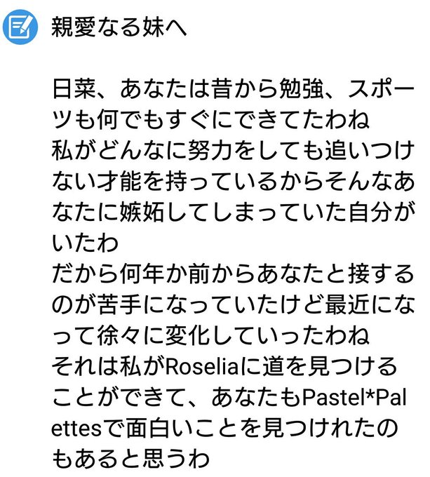 @dqenjoy325 ほんとに紗夜が変わりましたよね……… いや、正確に言えば昔の優しかったおねーちゃんに戻ったんですよね……… 尊い…