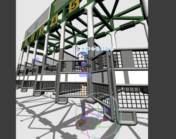 葉葉波(happalog)様のゲートの3Dモデル買って使ってみたけど出来が良すぎる…!ゲートの開閉が一括で表示切替え出来たりゲート番号も10番以降切り替えができるので並べて16頭立て可能。すごい🤔🏇 https://t.co/FBLi4fvky5