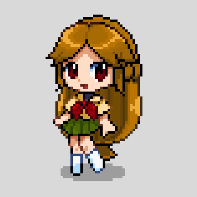 大きめなドット絵の練習 顔は可愛く描けましたが髪の毛の主線がこれで良いか迷い中