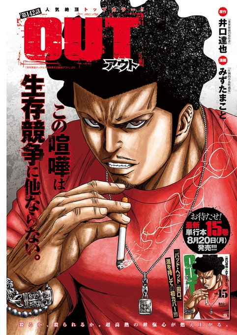 明日8/10(金)発売のヤングチャンピオン最新17号の「OUT」は、人気絶頂巻頭カラー!!「この喧嘩は生存競争」。 斬人メンバーの前で”最終決戦”への思いを語った丹沢!静かな殺気が漂う中、凶器が準備され…!?最終決戦の時が近く!! さらに!待望のコミックス15巻は8/20(月)発売ですよー!!