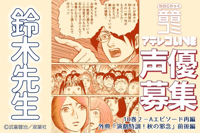 文化庁メディア芸術祭マンガ部門優秀賞受賞、テレビドラマや映画化された武富健治先生の代表作『鈴木先生(演技指導編)』音音コミックアテレコLive声優募集