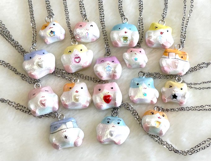 今回のはむネックレスのラインナップはこちら! また、おまけにお一人様ひとつ、ランダムで缶バッチプレゼント🎵🐹