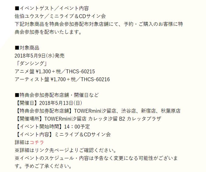 5月13日(日)TOWERmini汐留店にてミニライブ&CDサイン会を実施いたします!!参加方法などこちらよりご確認くださいhttps://t.co/XhSFcYWwG5