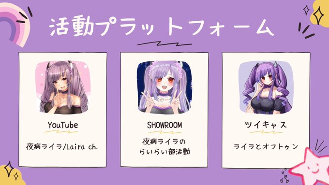 💌ファンレター宛先:https://t.co/xV1YcxVha9 ✉マシュマロ:https://t.co/XdXhUwc52u 💜ファンネーム:よや民 💜推しマーク:💊🕸 💜配信タグ:#らいらのらいぶ 💜ライラ宛ツイタグ:#らいらぶゆー 💜ファンアート:#夜病アート 💜ハンドメイドタグ:#夜病お手製