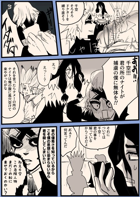結構頑張ってキャプションとか書いたのに支部にまた弾かれたのでTwitterに上げます… 本にしようと思って進捗あげてた司千のハッピー敗戦ifのやつです