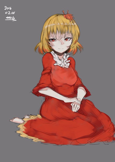 #深夜の真剣お絵描き60分一本勝負 静葉様 座ってる姿が一番きれいっぽかったので。 厚塗りっぽくかいてみました。 どうでしょう?