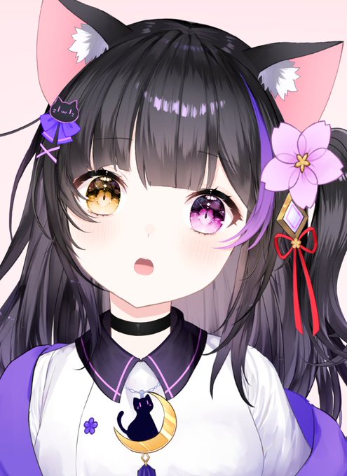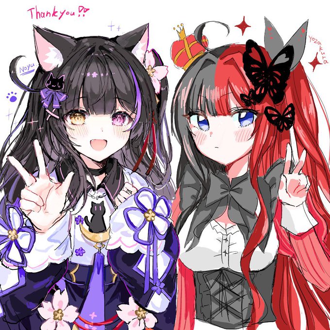 夜桜はNoyuママのオリキャラのカーマインちゃんを描いて、Noyuママは夜桜を描いていただきました🐾♥️