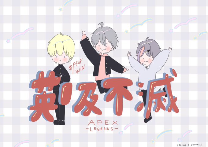 メンタル重要だね! 緊張の中結局わちゃわちゃしてる3人 ほんとステキ~🧸🌟 AQFらしさ♡ 3人のペースでゆるりと楽しんでね🎪 simple version も置いときます♡ (スィンプルヴァージョン) #絵クス絵画 #KuzuArt #絵スコート #英吸不滅 #AQFWIN #Vtuber最協決定戦 #ApexLedgends