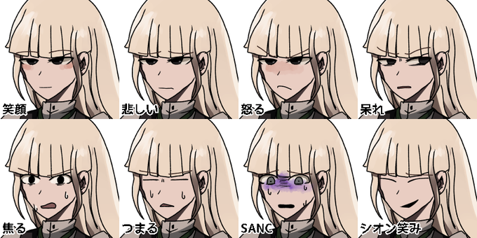 この間クオリティーにお邪魔した時のヨツハさんヨズトver立ち絵まとめです!みつときさん(@ushimiztoki)の立ち絵を参考にした表情!「つまる」の口の形とかほんとみつときさん! シオン笑みは中間差分です。一気に信用できない顔になって笑っちゃった…ヨツハさんが普段使わない表情筋つかってそう