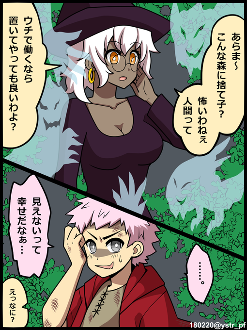 診断メーカーから。霊的なものが見えすぎて気味悪がられてきた少年と、オカルト的な実験が大好きなのに霊的なものが全然見えない魔女 #魔女集会で会いましょう