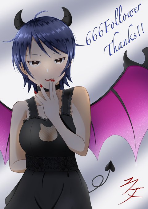 フォロワー666人になりましたっ わーいヾ(*´∀`*)ノ 6が3つなので記念に悪魔っぽい留美さん描いたので見ていってください #和久井留美