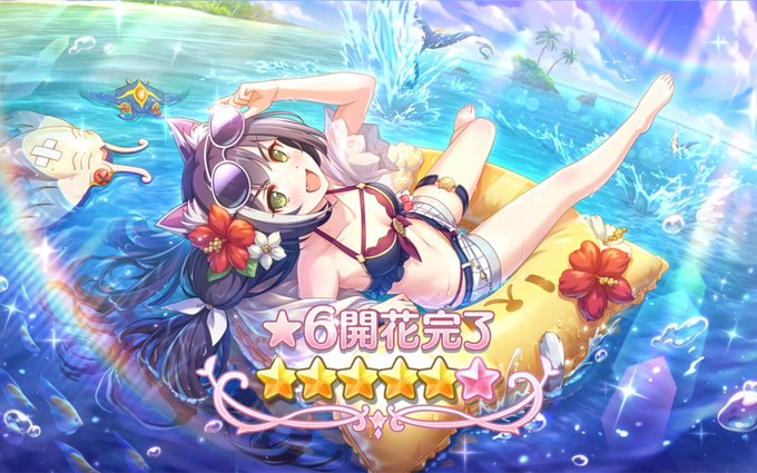 ウオオオオアアアア\( 'ω')/アアアアアッッッッ!!!!! 水着キャルちゃんペコちゃん星6満開いいいぃぃぃ!!! せっかくなんで開放クエは美食殿全員入りパーティでクリアしました🥰 ペコちゃんシャドウの火力がヤバすぎて苦戦した(小声