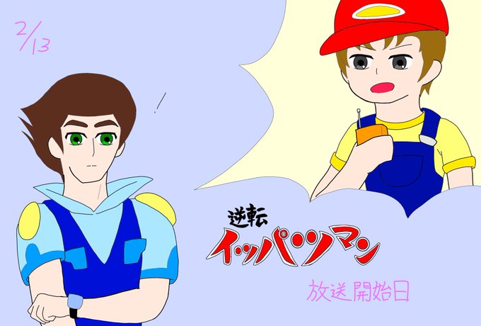 先程も呟いたとおり、今日は『#逆転イッパツマン』放送開始日です!今年はイッパツマンが出動する前段階・ピンチ通信の場面を描いてみました。これをやる様子は、私にとって羨ましいものです♪