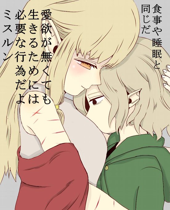欲望を失い"人形"のようになったミスルンを見てえも言われぬ感情を覚え、「生きる為に必要な行為だ」と言いながら迫るミルシリル #ダンジョン飯 #ミスルン #ミルシリル #イラスト