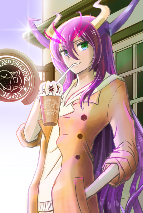ブームが去った頃にひっそりと界隈の片隅で。私服でスタバなうなロキさんらくがき(表情差分も) #パズドラ私服部