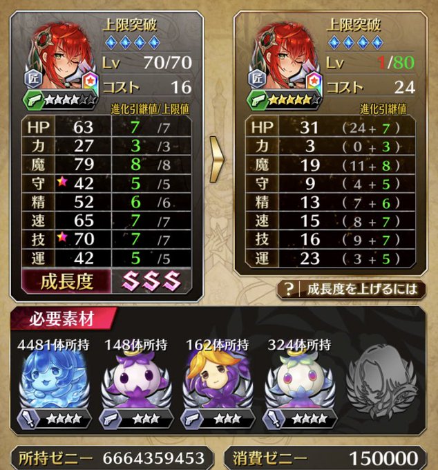 そのままレベルを上げて…、良い感じに☆が付いた感じかな、、、