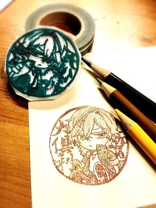 優雨【@twinklestar1902 】と一緒にハンコ作りました/////第一弾の倶利さん!