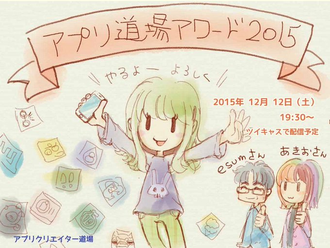 アプリ道場の卒業生さんたちが今年出したアプリの数、なんと50本!ってことで、「アプリ道場アワード2015」やります、ツイキャスで配信予定、よかったら見てね!*リンあれ https://t.co/sLT1430IYk