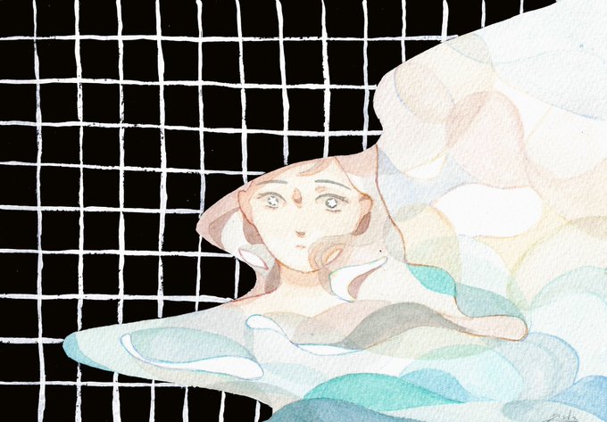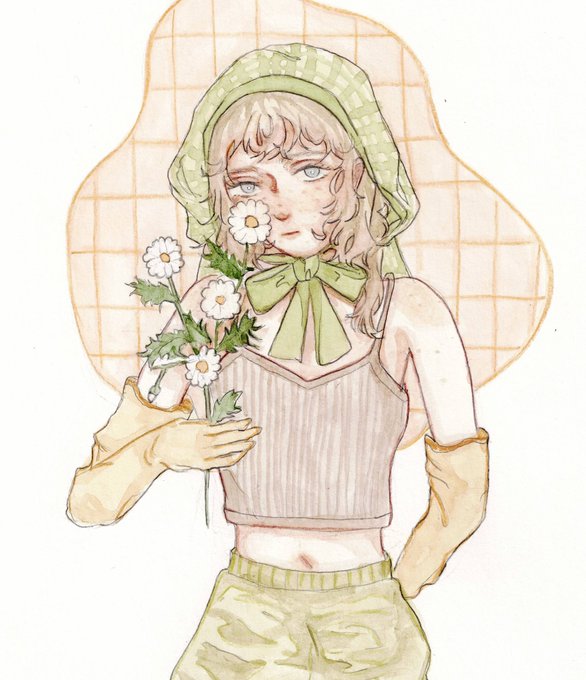 #三連休はフォロワーさんが増える 最近の絵です。水彩を使って温度感を意識しながら女の子を描いています💐