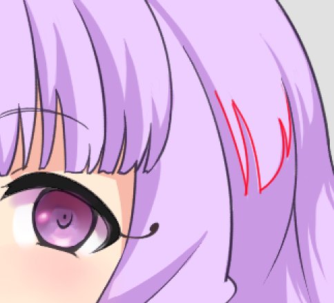 髪の毛の影のつけ方。普通の髪の毛の束を描くのと同じ容量で影をつけるとそれっぽくなると言う気付きを得てまたひとつかみえしにちかづいてしまった・・・