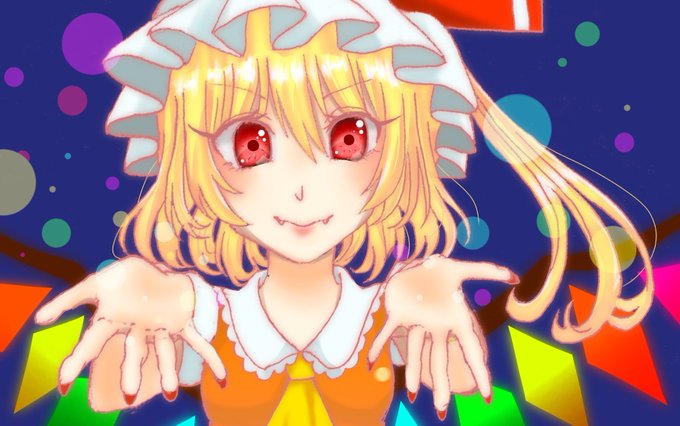 フランドール・スカーレットちゃんです。 友人へのプレゼント! 3年前のイラストを描き直しました(●︎´▽︎`●︎) #東方Project #絵描きさんと繋がりたい