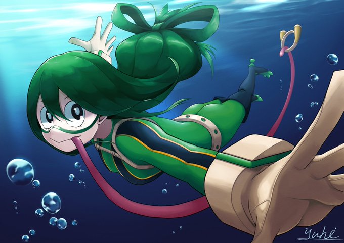 水中パトロール🐸 #ヒロアカ #僕のヒーローアカデミア #蛙吹梅雨 #イラスト